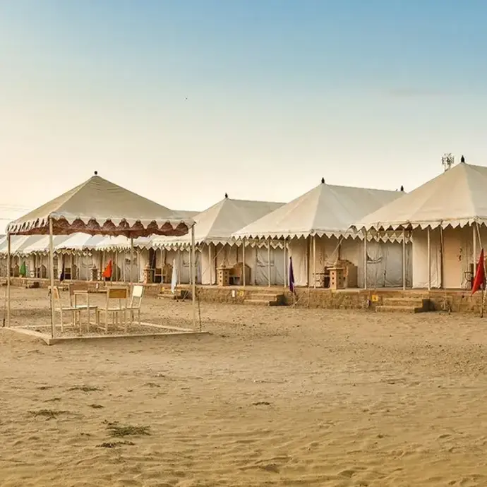 Relish a luxurious stay in a swiss tent, enjoy a sensational camel ride, cherish watching the mesmerizing sunset over the dunes and adore the traditional Rajasthani cultural program.